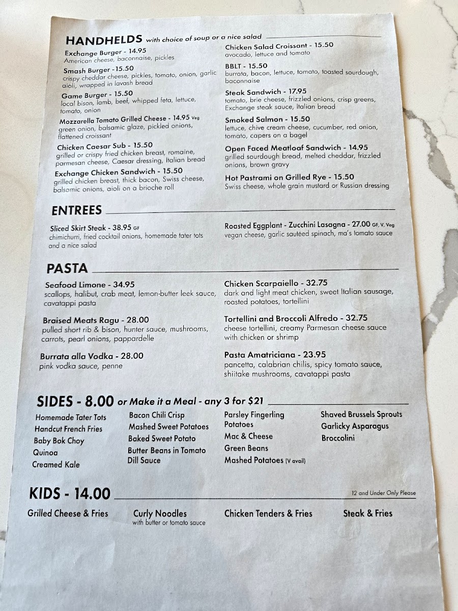 The restaurant shines in its dedication to quality, from the fresh ingredients to its warm, cosmopolitan atmosphere. Sides like Garlicky Asparagus and Homemade Tater Tots complement each dish perfectly. Diners like Antonia S. rave about the attentiveness of the staff and the generous portions—an experience that seamlessly marries tradition with modern dining flair. Whether you’re there for a casual lunch or a special night out, The Exchange Restaurant promises to leave you craving more.